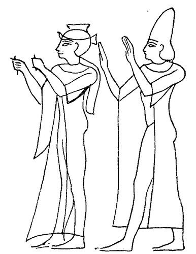 Когда царь и царица входят в усыпальницу, баран, овца, серебряное ожерелье, подобное лунному серпу, передаются богу Агу Ненаша[273]. Вступив в усыпальницу, отправляются Кура и Барама в свой предел и там пребывают. Входит и царь в свой предел, царица же — в свой. И пока находятся царь и царица в своих пределах, передает Эннаил быка серого цвета, двух овец, серебряное ожерелье, подобное лунному серпу, для бога Иббини-лима; двух овец, серебряное ожерелье, подобное лунному серпу, для бога Шагиша; двух овец, серебряное ожерелье, подобное лунному серпу, для бога Ишркут-Даму. Поднявшись с льняных полотнищ, выходят царь и царица, и усаживаются они на троны отцов своих и ждут, когда наступит миг появления бога Солнца. Как только восходит бог Солнце, взывает «Тот, кто назначен взывать», плакальщики же затягивают плач, плач богини Нинту[274], разгневанной богини. И «Тот, кто отвечает за сияние» молит о возвращении сияния, и Нинту делает вновь сияющими и Куру, и Бараму, и царя, и царицу. «Тот, кому поручено окропление» трижды окропляет из кувшина усыпальницу Ненаша. Сын Нацаму[275] кладет на стол цепь для сокровищницы богини Аштар[276], помещая ее сбоку от богини, и затем трижды приподнимает ее, третий раз — перед восходящим богом Солнцем. Овцу для Куры, овцу для Барамы, овцу для Ишру передал Ибриум[277] на глазах у Куры, пока царь и царица оставались в пределе. Передает Ибриум также телку и овцу для восходящего бога Солнца. В течение десяти дней по овце для Аштар, за десять дней десять овец для богов передает Ибриум. «Тот, кому поручено окропление», окропляет усыпальницу. Очищенное масло предусмотрено для богов, предусмотрено оно и для людей. Плакальщики исполняют плач, а человек города Харуту произносит слова благословения. Затем трижды проигрывают плач царя, трижды — плач царицы и семь раз произносит благословение женщина, на которую возложена забота об одеяния, о покрывале для царицы. После этого покрывает она голову и руки царицы, пока царь и царица сидят на тронах отцов своих. Когда бог Солнце приближается к дверям предела Куры, царица сидит слева от царя. Царь и царица несут сосуды с маслом в то время, когда боги и суверены[278] входят в свои два предела. Царь и царица не должны вручать приготовленного, пока боги и суверены находятся в своих пределах. Приготовленное было вручено предыдущим вечером. А пока они находились в усыпальнице, для семикратного повторения ритуалов было соткано четыре одеяния по образцу тех, что носят в Мари: для Куры и Барамы и для царя и царицы. Когда они направляются к Саце, руки их не украшены, руки их не соединены. Первин стада царя и царицы никто не ест. Потом ест их царица, и тогда начинают есть и все остальные. Пока царь совершает священнодействие в храме для бога Шагиша, устанавливается статуя для духа-покровителя царя, а затем и для духа-покровителя царицы. Царь передает серебряное изображение богини Ишкхары[279] из самшитового дерева с серебряной головой и серебряный пояс на чаше. Передает он также изображение львицы из самшитового дерева с серебряной головой, серебряный пояс и чашу на цепи. И остаемся мы для двух семикратных ритуалов на протяжении семи дней и еще семи дней. Когда мы отпраздновали в этот день семикратный ритуал, голова Куры покрывается, и выходят царь и царица. И затем возвращаются они в храм богов чтобы вкусить жер
