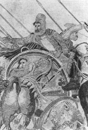 Но неутомимый Александр присутствует всюду. Он, как это представлено на мозаике, изображающей битву при Арбеле, во главе кавалерии несется в атаку, воодушевляет армию своей храбростью и одновременно руководит ею с мастерством настоящего стратега. Искусный наездник, грозный повелитель, самый великий из всех великих полководцев, он проявляет себя и как гениальный организатор.