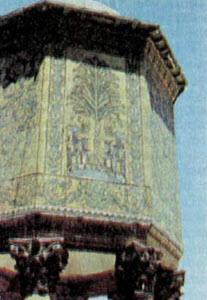 Роспись потолка галереи в медресе города Урай-Тюбе после реставрации