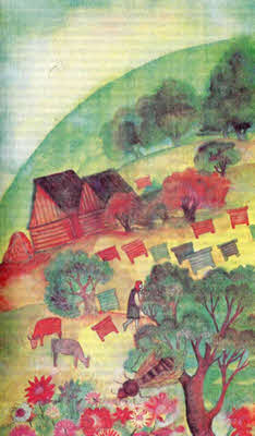 Недавно побывал в Прислонихе, в родном селе художника Пластова, посетил его семейную могилку, увенчанную огромным деревянным крестом, где рядом с художником покоятся и те, кого он всю жизнь писал, — все эти русские сеятели и хранители — Забродины, Шарымовы, Волковы… Каким-то особым, пробудившимся от общения с вечным покоем тихим чувством начинаешь приобщаться к извечному круговороту добра и зла, света и тьмы, к самой терпкой сердцевине жизни. Исчезли и продолжают исчезать многие русские села и деревни, но как живуча культура растительного мира на древних исчезнувших поселениях сеятеля и хранителя, и даже, казалось бы, хрупкая бузина, посаженная в предавние времена для отпугивания от усадьбы грызунов, еще долго-долго, из года в год гонит побеги, означая место давно исчезнувшего подворья, ушедшей в небытие крестьянской усадьбы с ее невероятно сложным, требующим ежедневного труда, ежечасного напряжения бытом. И самое главное, в невидимой, непримиримой борьбе жизни и смерти, в подземной тьме вновь и вновь происходит чудо воскрешения, снова и снова рвутся к солнцу от, казалось бы, давно растворившихся в земле корней живые, изумрудные побеги. И очевидно, в творчестве каждого истинного художника, старающегося всю жизнь проникнуть в душу своего народа, отражаются и его красота, и уродство. И у Пластова в его усилиях понять народ и его бесконечную душу не могло не отразиться и народное величие, и народные беды; художник так и не покинул народ в самые тяжелые времена и во всем разделил его нелегкие заботы. «Вам, уважаемый Аркадий Александрович, предстоит с семьей прополоть один га свеклы, — говорил ему, когда подходил срок, очередной лихой наездник с тайным злорадством и упоением собственной властью над сеятелем и хранителем, — иначе вашу корову, да, да, именно вашу корову не будут пускать в стадо». Россия — страна чудес, бывало и не такое, отрезали же в свое время и огород у матери Есенина по самые окошки: родила певца кулацкой деревни, нет тебе земли, кормись чем хочешь… Выйдя из дома художника и засмотревшись на окрестности, на старую деревенскую церковь, которую все никак не соберутся привести в божеский вид, я не заметил, как ко мне приблизилась старуха, в свою очередь с любопытством начавшая меня рассматривать. Это и была Дарья Федоровна Шарымова, мать девятерых детей (случалось когда-то и такое в русских селах) — их почти всех писал при жизни художник, и не по одному разу. Я оглянулся, наши взгляды встретились, и старуха спросила: — Начальник небось? Что ж вы нам дорогу-то подальше в село не протянете? — она спросила и, увидев, что я стал листать блокнот, заторопилась, замахала руками. — Ой, да не пиши, не пиши, ну вас всех к богу, а то такую тебе дорогу протянут… И она все о том же, о бездорожье… Нет ничего пронзительнее и прекраснее лиц вот таких старых русских крестьянок, вынесших на своих плечах то, что никто другой не смог бы вынести, не захотел бы выносить, и вот даже теперь за самые невинные свои слова опасавшихся всяческих невзгод и принуждений от начальства. И лицо это, изборожденное глубокими морщинами, с ясными, словно устремленными в неведомую даль своей судьбы глазами, для меня вдруг как бы соединило в одно целое всю сложную и противоречивую картину жизни, и в этой картине как бы проступил тяжкий и победоносный путь самого народ