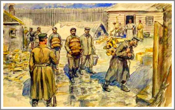 Иван Владимиров (справа) делает зарисовки с группы пленных японских офицеров, 1900-е