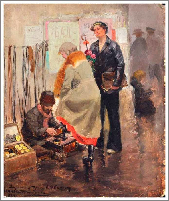 А в 1917—1918 годы он, работая в Петроградской милиции, сделал цикл документальных зарисовок на злобу, скажем так, дня. Художник вспоминал: «Все время моей милицейской службы я имел с собой альбомчик и свободно зарисовывал все, что интересовало меня. Придя домой, я дополнял неясные штрихи и зарисовки и даже иногда закрашивал их акварелью, таким путем собрал богатейший материал для будущих картин, отображающих сцены и эпизоды революционной борьбы».