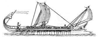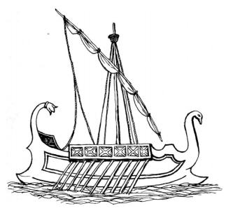 Греческая парусная диера VI века до н. э. Рисунок с этрусской вазы.