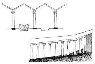 Впрочем, трудно отличить нос от кормы на схематичных и мелкомасштабных изображениях римского времени. Редкостное исключение в этом смысле - рисунок носовой части корабля из неапольского музея Борбонико и, как предполагают, парное к нему детальное изображение кормы, тоже хранящееся в Неаполе. Самый надежный признак кормовой части - это алтарь. Что касается диаеты, то, поскольку специальных пассажирских судов еще не было, а трюмы были заняты грузом, то пассажирам, даже если их звали Цезарь, приходилось все же довольствоваться палубой. Короткие рейсы и мягкий климат не создавали особых неудобств, и палуба была обычно переполнена народом: по свидетельству историка Иосифа Флавия, количество пассажиров могло доходить до шестисот.