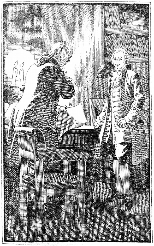 Ломоносов ссыпал с широкой ладони в ящик сверкнувшие в солнечном луче голубой зеленью колючие столбики мозаики и медленно, нехотя, принялся развязывать тесемки рабочего фартука. — Говоришь, тотчас же просят быть?.. — Тотчас же, Михайло Васильевич, — приглушенным почтительным баритоном ответил стоявший у двери высокий гайдук в расшитой золотом ливрее. Он неловко переступал с ноги на ногу, стараясь не коснуться стены, беспрестанно сдувал с белого пера на шляпе невидимые пылинки и опасливо озирался на носившуюся по мастерской сажу. Ломоносов перехватил его взгляд и усмехнулся: — Боишься замараться? — Боюсь, Михайло Васильевич. — Ступай во двор. Жди у кареты. Ломоносов повесил фартук на гвоздь. Идя к двери, он остановился у ящика с мозаикой и, словно раздумывая вслух, проговорил: — Холодна зелень–то. Придется начинать все сызнова. Надо скорее уезжать на фабрику в Усть–Рудицу. Здесь, видать, не дадут работать. Высокая карета с гербами Ивана Ивановича Шувалова на золоченых дверцах стояла у ворот между двух луж. Быстрым привычным жестом гайдук выбросил лестницу, распахнув, придержал дверцу и с щегольским стуком захлопнул ее, когда Ломоносов уселся на скрипнувшее под ним сиденье. Карета тронулась вдоль по захламленной набережной Мойки в сторону Невского проспекта. Еще не спавшая после половодья Мойка плескалась почти вровень с берегом. Ломоносову через окошко не было видно мостовой и казалось, что карета движется по воде. «Зачем же я вдруг так срочно понадобился Шувалову? — раздумывал Ломоносов. — Что за важное дело? Может быть, он добился мне привилегии в академической канцелярии? Или опять Синод требует моей головы за «Гимн бороде»? И, припомнив строчки из «Гимна», Ломоносов улыбнулся и с удовольствием прочел:Этьен Фессар, парижский гравер, член Академии живописи и скульптуры, уже вторую неделю жил в Петербурге. Туманный недостроенный Петербург, насквозь продуваемый нездоровым ветром, нагонял на него тоску. Академия Художеств, преподавать в которой его пригласил покровительствующий искусствам и наукам фаворит русской императрицы Иван Иванович Шувалов, не имела ни здания, ни средств, ни учеников. Она существовала лишь в воображении увлекающегося вельможи. Фессар не собирался оставаться в России. В Петербурге его держали распутица и работа, которую заказал ему этот русский, богатый, как Крез, меценат. Он просил сделать портрет русского придворного одописца Ломоносова. «Интересно, каков он, этот поэт? — размышлял Фессар, ожидая прихода Ломоносова в обширном, похожем одновременно на парадный зал и на лавку антиквара кабинете Шувалова. — Впрочем в подобном портрете безусловно необходимо перо, лист бумаги, устремленный вверх вдохновенный взгляд, свободная, но почтительная поза и, конечно, какой–нибудь подходящий фон». Фессар раскрыл альбом и несколькими штрихами набросал фигуру. Композиция удавалась. Художник потихоньку подсвистнул под нос легкомысленную мелодию, с удовольствием глядя на свой рисунок. Теперь оставалось прорисовать лицо — и эскиз готов. В кабинет вошел Шувалов. Он был одет по–домашнему — в халате, отороченном мехом. Темный пушистый мех на широких, до плеч, отворотах живописно оттенял матовый нежно–розовый цвет кожи его красивого ангелоподобного лица. Он выглядел гораздо моложе своих тридцати лет. — Я уже