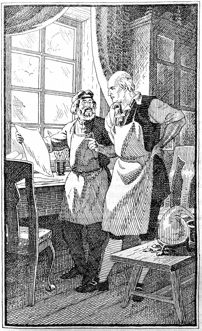 Радищев с жадностью вглядывался в лица чиновников. В самое первое мгновение ему показалось, что он вдруг попал в какой–то фантастический мир карикатур. Все пороки, казалось, отложили свою печать на этих лицах, а более всего — жадность, плутовство и неумеренная страсть к вину. Радищев старался себя уверить, что внешний вид бывает обманчив и что необязательно же хороший, честный человек должен иметь ангельский облик. Но внезапно появившееся разочарование помимо его воли гасило в нем то чувство высокой торжественности, с которым он переступал порог канцелярии…