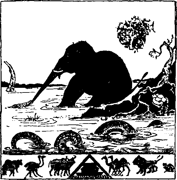 Кала Наг, — что значит Черный Змей, — сорок семь лет служил индийскому правительству всеми способами, доступными слону. Когда его поймали, ему уже минуло двадцать лет, следовательно, теперь он приближался к семидесяти годам, — зрелый возраст для слона. Кала Наг помнил, как однажды на его лоб наложили большую кожаную подушку, и он вытащил орудие из глубокой грязи; это случилось до афганской войны 1842 года, когда он еще не вошел в полную силу. Мать Кала Нага — Рада-Пиари (Рада Дорогая), — пойманная в одно время с ним, раньше чем у него выпали маленькие молочные бивни, сказала ему, что слоны, которые чего-либо боятся, неминуемо попадают в беду. И Кала Наг скоро осознал справедливость ее слов, потому что, когда перед ним в первый раз разорвался снаряд, он закричал, отступил, и штыки поранили его мягкую кожу. Итак, не достигнув двадцати пяти лет, он перестал бояться чего бы то ни было, приобрел всеобщую любовь и стал считаться лучшим слоном правительства Индии; за ним ухаживали больше, чем за его собратьями. Работал он много: во время похода в Верхнюю Индию Кала Наг переносил палатки, по двести пудов палаток сразу; однажды его подняли на судно паровым краном, и в течение многих дней везли по воде; в неизвестной ему стране, где-то далеко от Индии, его заставили нести на своей спине мортиру; и там, в Магдале, он видел мертвого императора Теодора, вернулся на пароходе и, как говорили солдаты, получил право носить медаль, выбитую в честь абиссинской войны. Прошло десять лет; Кала Нага отослали в страшную страну, Али-Мушед, где его собратья умирали от голода, холода, падучей болезни и солнечных ударов; позже его послали на несколько тысяч миль южнее, чтобы он таскал и складывал в громадные груды толстые стволы индийского дуба на лесных дворах Моулмена. В этом месте он чуть не убил непокорного молодого слона, отказавшегося выполнить свою долю работы. Его увели от лесных порубок и поручили ему вместе с несколькими десятками других слонов, выдрессированных специально для того, чтобы помогать людям, ловить диких слонов в горах Наро. Правительство Индии строго охраняет слонов. Существует целый департамент, все дело которого состоит в том, чтобы отыскивать их, ловить, укрощать и рассылать повсюду, где требуется их труд. Кала Наг имел полных десять футов роста; его клыки были отпилены, так что от них остались только куски в пять футов; концы их оковали пластинками меди, чтобы они не расщеплялись; тем не менее он мог действовать этими обрубками лучше, нежели любой необученный слон своими настоящими, заостренными бивнями. Неделя за неделей слонов осторожно теснили через горы; наконец сорок или пятьдесят диких чудовищ попадали в последний загон, и большая опускающаяся дверь, сделанная из связанных вместе стволов деревьев, падала позади них. Тогда, по слову команды, Кала Наг входил в этот полный фырканья и воплей пандемониум (обыкновенно ночью, когда мерцание факелов делало затруднительным правильное определение расстояний), и, выбрав самого крупного, самого дикого обладателя больших бивней, принимался бить его и гонять, пока тот не затихал, люди же, сидевшие на спинах других ручных слонов, накладывали веревки на более мелких животных из стада и связывали их. В смысле приемов борьбы не было ничего неизвестного Кала Нагу, старому умному Черному Змею, потому что, в с