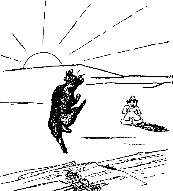 Закон Джунглей (самый древний в мире) составлялся постепенно, на каждый случай, который мог произойти в зарослях, и наконец его кодекс достиг почти полного совершенства. Если вы читали о Маугли, вы вспомните, что большую часть своей жизни он провел в сионийской волчьей стае, изучая Закон, который ему преподавал Балу, бурый медведь. Когда мальчика стали раздражать вечные приказания, именно Балу сказал ему, что Закон Джунглей походит на исполинскую лиану, потому что он обвивает каждое существо и никто не может убежать от него. — Когда ты проживешь столько, сколько прожил я, Маленький Брат, ты, может быть, увидишь, как все живущие в джунглях повинуются одному Закону. И это будет неприятное зрелище, — прибавил медведь. Его слова вошли в одно ухо Маугли и вылетели из другого потому, что мальчик, который думает только как бы поесть или поспать, не заботится ни о чем, пока беда действительно не заглянет ему в лицо. Но однажды наступил такой год, в который слова Балу оправдались, и Маугли увидел, что в джунглях все подчиняются общему Закону. Началось с того, что зимой почти совсем не было дождей, и при встрече с Маугли в бамбуковой чаще дикобраз Икки сказал, что дикий ямс совсем засыхает. Всякий знает, что Икки до смешного разборчив в еде, что он ест только все самое лучшее и самое спелое. Поэтому Маугли засмеялся и сказал: — Мне-то что за дело? — Теперь мало дела, — сказал Икки, беспокойно побрякивая своими иглами, — а позже увидим. Скажи, хорошо ли нырять в глубоком затоне под Пчелиной Скалой, Маленький Брат? — Нет. Глупая вода все уходит, а разбивать себе голову я не намерен, — ответил Маугли, который в те дни был вполне уверен, что он знает больше, чем пятеро любых жителей джунглей взятых вместе. — Очень жаль. Через маленькую трещину в твою голову, может быть, проникло бы немножко ума. — И дикобраз быстро шмыгнул в чащу, чтобы Маугли не стал дергать его за щетину на носу. Позже мальчик повторил Балу слова Икки. Балу стал серьезен и пробормотал скорее для себя, чем для него: — Будь я один, я ушел бы охотиться в другое место раньше, чем остальные заметят… Между тем охота посреди чужих оканчивается дракой, и тогда человеческий детеныш мог бы пострадать. Надо подождать и посмотреть, как цветет мохва. В эту весну мохва, любимое дерево Балу, совсем не зацвело. Зной убил его сливочно-желтые и как бы восковые цветы раньше, чем они родились, и когда медведь, стоя на задних лапах, тряхнул нежный ствол деревца, на землю упало несколько дурно пахнущих лепестков. После этого чрезмерная жара дюйм за дюймом поползла к самому сердцу джунглей, делая их зелень желтой, коричневой и, наконец, черной. Зеленые поросли на откосах рвов иссохли, превратились в разорванные нити и искривленные пластинки мертвого вещества; в болотистых естественных прудах высохла вода; они затянулись запекшейся грязью, и на их краях остались последние следы ног, точно отлитые из чугуна; лианы с сочными стеблями упали с деревьев, которые они обнимали, и умерли у их подножий; бамбуки завяли и звенели, когда на них налетал горячий ветер; мох осыпался с камней и толстым слоем лег на землю; наконец, все скалы так же обнажились и раскалились, как дрожащие синеватые валуны на сухом ложе реки. Птицы и обезьяны рано переселились на север; они знали, «что» подходит; олени и кабаны убежали в погибшие деревенские