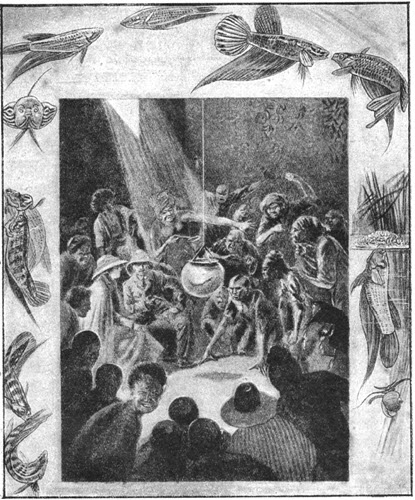 Три дня дул норд-ост, и в море была «свежая погода». Водолазные работы прекратились. Резцов с утра сидел в казарме и злился. Для такой опасной работы на большой глубине необходим был полный штиль. Малейшая неосторожность старшины у сигнальной веревки и насоса могли стоить жизни водолазу. Он не ходил эти дни к Прониным. Лишь Варя забежала на минутку сказать, что ей удалось незаметно положить дневник в дедушкину шкатулку… Но Резцов встретил ее сурово: надобность в девушке миновала, и его грубое сердце не дрогнуло, когда Варя тихо заплакала. — Отчего ты так сердит? — Не реви! Терпеть не могу женских слез! Разве не видишь, какая погода, — работать нельзя. Он нетерпеливо, в десятый раз бросил взгляд на барометр и заметил вдруг, что стрелка начала подниматься. — Наконец! Резцов быстро выпроводил Варю и бросился к рейду. Погода прояснилась. Последние тучи быстро убегали к востоку. Из их темной толпы внезапно вырвался золотой шар — яркое солнце — и радостным светом залил все еще не успокоившееся море, кудрявое от мелких барашков. Наступала мертвая зыбь. — Незамай! — гаркнул Резцов во всю силу могучих легких. — Готовь вельбот! — и снизу, с бухты, донеслось ответное слово: — Есть вельбот! Через полчаса вельбот вылетел на рейд, в толчею мелкой зыби. А еще через полчаса Резцов в полном облачении водолаза давал последние инструкции Незамаю и двум матросам: не спускать глаз с сигнальной веревки. И быстро спустился на дно. На этот раз он сразу отыскал остов корабля. Корвет лежал на боку, и пришлось сделать лишь несколько шагов, чтобы наткнуться на широкую пробоину в подводной части. Резцов внимательно проверил респиратор[7]) цилиндров. Дышалось легко, лишь в ушах стоял обычный шум. Он дал наверх сигнал: «Потрави!» И смело двинулся в пробоину корабля. Прошел среди покрытых ракушками обломков к машинному отделению. Здесь лежало два костяка с лопатами около них — кочегары у топки. Осторожно пролез через обломки и наткнулся на груду скелетов, валявшихся в беспорядке. Здесь все было затянуто, как густой кисеей, мелкими, блестящими ракушками и молюсками. Резцов осторожно, все время требуя сигналом «потравки», двинулся к носу корабля. Он, опытный моряк, знал, что ценности всегда хранились в большой командирской каюте, которая обычно была на носу, под мостиком, где сосредоточивалось управление судном. К этой каюте он и шел, равнодушный ко всем подводным зрелищам. Он шагал через пушки, которые теперь стали зелеными от ржавчины, через груды кортиков и ружей, точно поспешно сброшенных командой перед гибелью судна. Наконец он добрался до носовой части. Капитанская каюта была завалена обломками, которые приняли форму чудовищных, неведомых подводных зверей, замерших в момент бешеной схватки. «Эге! Да здесь работы дня на три», — подумал Резцов, и двинулся обратно. Он решил поручить черную работу очистки входа в заветную каюту Незамаю. А когда все будет готово — он спустится сам и довершит дело. Резцова подняли наверх. Он отдохнул и призвал к себе Незамая. — Вот, братец… даю тебе работу. Внизу лежит корвет. В носовой части завал обломков — надо очистить вход. Это для американцев, значит… Будет награда сверх полученного. И стал давать подробные инструкции. Незамай внимательно выслушал и тут же стал облачаться в костюм водолаза. Когда его спустили, Резцов сам сел у си