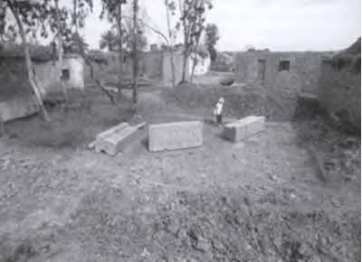 Гранитные блоки дверного проема резиденции Аменемхета, лежащие посреди домов деревни Эзбет Хелми.