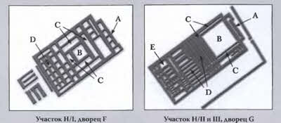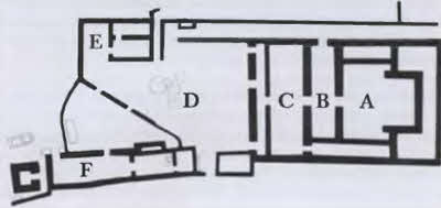 3. Район F, где находились дворец и гробница азиатского чиновника конца XII династии. Колоссальная сидячая заупокойная статуя была облачена в разноцветный плащ.
