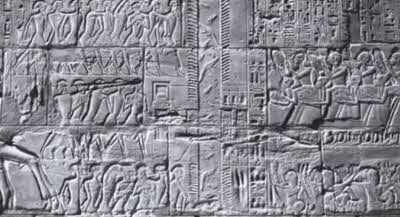 Слушая Битака, описывавшего увлекательную находку крепостной стены и давно забытой реки, я невольно вспоминал знаменитую стелу с надписью царя Камоса (годы правления НХ — ок. 1194–1191 гг. до н. э.; ТХ — ок. 1543–1539 гг. до н. э.), последнего правителя XVII династии. Он был старшим братом Ахмоса и первым из туземных фараонов, напавшим на Аварис после продолжительной и жестокой борьбы за освобождение Египта от презираемых египтянами асшу («азиатов»). Стоя на палубе своей боевой ладьи перед высокой стеной из глиняных кирпичей, окружавшей цитадель Авариса, египетский фараон заметил испуганных женщин царя гиксосов Апопи (годы правления НХ — ок. 1199–1183 гг. до н. э.; ТХ — ок. 1570–1535 гг. до н. э.) и сравнил их с ящерицами, высовывающими головы из нор на берегах Нила.