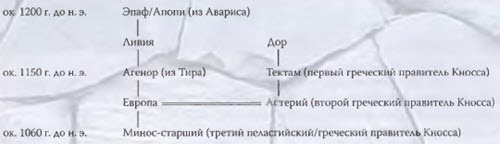 «После 1996 г. исследование не только Трои, но и гомеровских текстов на предмет материальной основы «Илиады» столкнулось с новой ситуацией. До этого времени не было точно установлено, что Троя/Илион (центральная декорация гомеровского эпоса) может быть приравнена к руинам на холме над Дарданеллами, известном под названием Гиссарлык… Однако после 1996 года уже не осталось сомнений, что сцену действия «Илиады» следует приравнять к раскопанным руинам в Гиссарлыке. Гомеровский Илион [(W)Ilios] — это Вилуса [Wilusa], город, тесно связанный с Хеттской империей»{14}.Если Троя/Илион имеет историческую основу, то как быть с другими греческими легендами, многие из которых связаны с событиями, предшествовавшими «Илиаде» и последовавшими за ней? Существует ли новый материал, который может пролить свет на происхождение западной цивилизации? Собрание мифов и легенд Древней Греции включает ряд эпосов, повествующих о расцвете и падении ахейцев (микенцев) позднего бронзового века — к примеру, о деяниях Геракла (римского Геркулеса) и о приключениях Одиссея — в то время как другие повествуют о прибытии дорийцев. Согласно самим грекам, это событие ознаменовало конец «века героев». Существуют также более древние саги, написанные метафорическим языком и изобилующие мифологическими образами, где речь идет о зарождении греческой цивилизации бронзового века. Эти тексты намекают на события далекого прошлого и воскрешают воспоминания о морском путешествии и политическом брачном союзе между индоевропейской принцессой и египетским фараоном и о расселении индоевропейских племен на побережье Леванта. Есть также легенда о Данае, в которой основание микенской Греции приписывается эпонимическому предку гомеровских данайцев, прибывших на Пелопоннес из Египта за много поколений до этого. Миниатюрная фреска в «западном доме» Акротири на острове Санторин — возможно, старейший в мире пример исторической живописи — может служить ключом к давно утраченному эпосу гомеровского масштаба, связанному с переселением в Египет и приобретением господства над ним в конце среднего бронзового века предков микенских греков Агамемнона. Здесь я попытаюсь поместить эти истории в исторический контекст, который одновременно объясняет их и проливает новый свет на «сумрачный период» правления гиксосов, разделяющий эпохи Среднего и Нового Царства в династической истории Египта. Мы постараемся раскрыть личности гисосских царей, и вас может удивить то обстоятельство, что их история красочно вплетена в ткань нашего легендарного прошлого. Правление гиксосов в Египте — не просто предмет исследования для египтологов, но период, тесно связанный с корнями западной цивилизации. Мы дойдем до этих скрытых корней с помощью недавних археологических открытий и глубокого анализа истории искусств бронзового века. Будет показано, что эпоха гиксосов является исторической основой для греческих и римских легенд. Я также попытаюсь датировать эти события согласно Новой Хронологии, пользуясь творческим мышлением, характерным для растущего числа исследователей, работающих в русле НХ. Да, древняя история может быть забавной и увлекательной!
