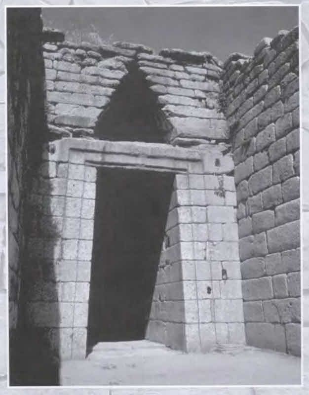 Те гиксосы, которые приплыли в Арголиду, захватили власть у местного правящего рода царя Геланора и стали править в Аргосе. Эта гиксосская ветвь пеласгийской аристократии, кичившаяся своими богатствами, награбленными в Египте, стала называться данайцами в честь их предводителя Даная. В течение примерно ста лет захоронение царской семьи в Аргосе находилось на южном склоне Микенской скалы; именно там были погребены царские мумии гиксосов из могильного круга А, обнаруженного Шлиманом во время знаменитых раскопок 1876 г. Сказочные сокровища, украшавшие тела в шахтной гробнице, были изготовлены из египетского золота, вынесенного из пирамид эпохи Среднего Царства гиксосскими «добытчиками», которые оставили свои авторпортреты с характерными Эгейскими начесами (на манер Элвиса Пресли) в качестве эквивалента надписи «здесь был Килрой». Золотые маски, покрывавшие мумифицированные лица воинов, найденных Шлиманом, были сделаны не по образу Агамемнона и его спутников, вернувшихся из Трои, а по образу таинственных властителей династии «больших гиксосов» из Авариса. Легендарная фраза Шлимана на самом деле должна была прозвучать примерно так: «Я видел лицо «владыки мужей» Киана». Два преемника Даная, вероятно, были захоронены в соседней шахтной гробнице VI до того, как Персей, потомок Даная (через свою мать Данаю) основал крепость и дворец в Микенах, откуда правили остальные члены династии, названной его именем. С этого времени началась эпоха микенских толосов (круглых гробниц), которая достигла кульминации при сооружении «сокровищницы Атрея» — подлинного захоронения Атрея, отца Агамемнона. Менее чем через сто лет после смерти Персея новая династия Пелопидов захватила власть в Микенах и Арголиде. Последним царем из династии Персеидов был Эврисфей. Атрей, сын Пелопа (царя Элида и сына Тантала из Анатолии), стал правителем Микен и возвел мощную защитную стену вокруг цитадели. Именно в это время шахтные гробницы правителей династии «больших гиксосов» и их супруг были обнесены циклопической стеной, а над ними был построен храм. Новая династия Пелопидов сооружала для себя еще более пышные «сотовые» толосы, когда Золотые Микены достигли зенита своей власти при Атрее и Агамемноне. Потом началась Троянская война. Кровавая схватка между ахейцами из микенской Греции и пеласгийскими/лувийскими союзниками Вилусы (гомеровский Илион) в Западной Анатолии с переменных успехом продолжалась в течение десяти лет. В конце концов победа ахейцев была омрачена политическим крахом у них на родине в результате чрезмерного отвлечения сил на войну в чужой стране. Государственные учреждения, основанные на потребностях и обычаях воинской элиты, обветшали и рухнули из-за того, что эти самые воины слишком долго были заняты привычным грабежом и убийствами на чужбине. В легенде наступление краха воплощено в гибели Агамемнона от рук вероломной супруги и ее любовника, родственника царя. Огромный толос, предназначенный для Агамемнона, был возведен во время правления царицы-узурпаторши и стал известен в преданиях под названием «гробница Клитемнестры». Когда археологи вскрыли захоронение, то обнаружили там лишь один женский скелет{434}.Дорийское нашествие