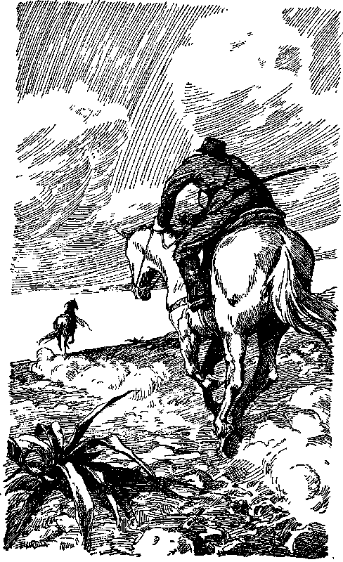 В то время как я размышлял обо всем этом, раздался конский топот. Нагнувшись через перила, я увидел юного всадника удивительной красоты. Он был очень смугл, без бороды и усов. С его плеч на круп лошади спускался красивый плащ, а на голове была легкая шляпа с большими полями, украшенная золотом. Лошадь под ним настоящей андалузской породы. Всадник мчался быстро, но, увидя меня на крыше, невольно сдержал свою лошадь. В эту минуту часовой, выскочив из засады, потребовал, чтобы юноша остановился. Но тот не обратил на это требование никакого внимания, пришпорил лошадь, продолжая свой путь по другой дороге. Я вовремя остановил часового, иначе он уложил бы на месте и всадника, и лошадь. Жаль убивать такого красавца - лучше взять его в плен живым. Я мгновенно соскочил с крыши, схватил поводья и поскакал на своем быстром коне. Моя лошадь бегала значительно быстрее других, и я знал, что смогу догнать всадника. Соскочить с крыши и сесть на коня было делом двух минут, а еще через две минуты я был уже в поле, преследуя всадника, который, очевидно, намеревался лесом обогнуть село. Сперва я думал, что мне не догнать юношу, но тут я заметил ряд агав, росших поперек дороги. Ветви этих растений так переплелись между собой, что, казалось, проехать не было никакой возможности. В этот момент юноша увидел, что я его догоняю, пришпорил коня и въехал в самую середину чащи. Слышно было, как под копытами лошади захрустели крепкие листья агавы. Медлить было нельзя, и я нырнул в заросли.