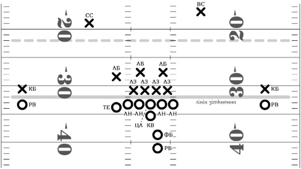 Малюнок 4. Схема атакувальногорозіграшу (захист не показано)