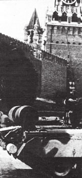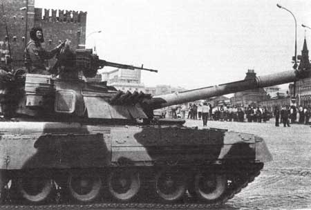 МЫ ВИДЕЛИ ИХ НА ПАРАДАХ Головнев (первый заместитель командующего московским военным округом) выехал в 4-ю Кантемировскую танковую, генерал Кирсанов — во 2-ю Таманскую мотострелковую. Знаменитые гвардейские соединения, мы привыкли видеть их на парадах. Стоят невдалеке, в 50 — 80 километрах от столицы, готовые двинуться на помощь в случае катастрофы, стихийного бедствия. И — любой чрезвычайной ситуации, угрожающей спокойствию города. Так оно всегда внедрялось в сознание солдат и офицеров. Головнев прибыл к кантемировцам в 6.05. Дивизия уже поднята и приведена в боевую готовность. Доложил командующему, тот сообщил:
