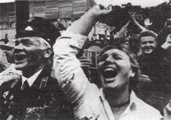 МИТИНГ НА ЛУБЯНКЕ был проведен… по инициативе Союза журналистов Москвы и редакции газеты «Московские новости». На постаменте «железному Феликсу» водрузили российский флаг. Народ скандировал: «Да здравствует Ельцин!», «Долой КПСС!». Выступившие Павел Гусев, Егор Яковлев, Павел Гутионтов, Владимир Познер, Эдуард Сагалаев осудили средства массовой информации, пошедшие на сговор с ГКЧП, и выразили благодарность москвичам за стойкость и мужество в дни путча. Особенно горячо собравшиеся встретили Александра Яковлева и по окончании митинга на руках донесли его до Моссовета. «Московский комсомолец», 22.08
