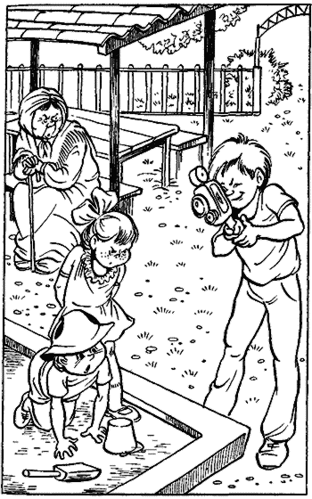 В ту субботу, придя из школы и пообедав, я вынул из шкафа самодельный киносъемочный аппарат и приступил к своему обычному занятию: я завел пружину аппарата, наставил пустой, без пленки, аппарат на кошку, умывавшуюся посреди комнаты, и нажал на спуск. Аппарат затрещал; кошка посмотрела на меня долгим взглядом, зевнула, потянулась и ушла под кровать. Я побрел на кухню и наставил рамку видоискателя на маму, которая мыла посуду. Кинокамера снова затрещала. Мама тяжело вздохнула и покачала головой: — Боже! Как ты мне надоел со своим аппаратом! Я тоже вздохнул и поплелся прочь из квартиры. Во дворе на лавочке сидела старушка. Перед ней катали жестяной самосвал двое малышей. Я навел свою камеру на них. — Все трещит и трещит! — прошамкала старушка. — Которые дети книжки читают или играют себе, а этот все трещит и трещит… Больше я трещать не стал. Я вернулся домой, спрятал свой аппарат, сел у стола и уныло задумался. Прошло уже десять дней, как я с помощью папы построил свою киносъемочную камеру и проектор к ней. Выглядела моя камера неказисто, но первая же пленка, снятая ею, оказалась вполне приличной. С тех пор и начались мои мучения. Папа купил мне два мотка пленки. Первый пробный моток я сгоряча извел на всякие пустяки, а стоил он не так уж мало. Я дал папе слово, что больше не истрачу зря ни одного кадрика. Я решил на оставшейся у меня пленке снять такую боевую, такую увлекательную кинохронику, чтобы все зрители были поражены. Несколько дней я слонялся со своим аппаратом по городу, ожидая, что случится какое-нибудь происшествие, но ничего не случалось. Я надоел всем родным и знакомым, расспрашивая их, не готовится ли где-нибудь интересное событие, но так ничего и не узнал. Моточек пленки лежал нетронутым в моем столе, а сам я утешался лишь тем, что наводил пустой аппарат то туда, то сюда и заставлял его трещать на холостом ходу. Этим треском я тоже всем надоел, да и самому себе порядком надоел. Раздался звонок. Я вышел в переднюю, открыл дверь и увидел своего двоюродного брата, пятиклассника Владю Аникеева. Я сразу догадался, что у Влади что-то произошло. Занятия в школе давно кончились, а он был с портфелем в руках. Кроме того, обычно солидный, аккуратный, он имел сейчас какой-то растрепанный вид: пальто его было распахнуто, воротник гимнастерки расстегнут, а большие круглые очки сидели криво на его носу. — Здравствуй! Дело есть! — сказал он, хмуро взглянув на меня, и стал снимать пальто. — Из школы? — спросил я. — Ага! — Что так поздно? — Сбор проводил. — Отряда? — Нет, с третьим звеном. Владя прошел в комнату и стал разглядывать в зеркале свое лицо. — П-подлецы! — процедил он сквозь зубы. Тут только я заметил, что правая дужка его очков сломана, а вдоль щеки тянутся четыре царапины. — Ты что, дрался, никак? — спросил я. — Разнимал, — проворчал Владька, не отрываясь от зеркала. — Кого разнимал? — Третье звено. — Вот это звено! На сборе подрались? — Нет, после. — Владя поправил на носу очки, но они тут же снова съехали набок. — А что за сбор у вас был? — На тему «Дружба поможет в учебе и труде». Я плюхнулся на диван и захохотал. Владя отошел от зеркала. — Тебе смех, конечно, а меня как председателя на каждом совете дружины за это звено прорабатывают. — Он сел на стул, расставив ноги и опершись руками о колени. — В общем, давай ближе к делу. Твой аппарат работает?