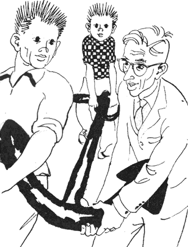 Только я решил идти обедать и побольше набраться сил, как подошли известные всему двору «мелкие хулиганы» Ленька и Петька. «Мелкими хулиганами» их окрестил дворник, после того как они летом, в прошлом году, утащили у него вместе с брандспойтом двадцатиметровый резиновый шланг. И ему целый день пришлось поливать двор из лейки. И хотя оказалось, что шланг они утащили для настоящего дела — нужно было полить пришкольный участок — и вечером вернули, прозвище все равно закрепилось за ними. Увидев меня, Ленька и Петька насмешливо спросили: — Что, струсил? — Да вы что?! — оторопел я. — Целый день его жду, а он не выходит. Значит, боится… — Он с самого утра на речке загорает. Книжечками обложился. Читает! «Наверное, он за мной следил, — подумал я, — и, когда я ходил завтракать, убежал на речку». — Идемте со мной, — позвал я ребят, — не пожалеете. — Кого бить будем? — сосредоточенно спросил шестилетний задира Вовка, который всегда появлялся неизвестно откуда и неизвестно куда исчезал. Я ему не ответил. Со мной отправилось человек десять. Сели в трамвай. Силы словно вливались в меня от замечаний «судей». — Он ему покажет… — Он его разрисует… — У Мишки книг много. Зашвыряет. — Ничего подобного, всего одна. Толстущая. Оглушить можно. Но Лешка парень крепкий. Мишка валялся на песке и читал книгу. Ребята остановились поодаль, чтобы не мешать, а я подошел к нему. Ни с того ни с сего задираться на Мишку было неудобно. Я начал искать предлог. — Читаешь? — угрюмо спросил я. Мишка повернул ко мне сияющее лицо. — Ага. Ух, как здорово! «Три мушкетера», сочинение Дюма-отца. — Я только сына читаю, — съязвил я и лег рядом. Мишка поверил: — «Дама с камелиями»? — Ага, — растерялся я. Вот уж не подозревал, что на свете есть целых два Дюма: отец и сын! — Здорово! — с уважением сказал Мишка. — А я эту книгу до сих пор достать не могу. На нее в библиотеке знаешь какая очередь! Я лежал и злился на Мишку: почему он такой приветливый? Ясное дело, повалил меня вчера, а теперь все на нет сводит. Для приличия я прочел одну строчку. Потом — другую, третью… И поехало… Когда я оторвался от книги, уже вечерело. Никого на пляже не было. Мы с Мишкой дошли до 340-й страницы, и вообще я забыл, зачем сюда пришел. Мы возвращались домой и горячо ругали кардинала Ришелье и его коварных гвардейцев. И только во дворе, когда ребята закричали на меня: «Трус! Трус!» — я вспомнил, что собирался Мишку поколотить. Мы с Мишкой только засмеялись: зря они надрываются! Я взял книгу домой (Мишка уступил ее на ночь!) и с тех пор… Я записан во все библиотеки города… Ну, не во все… Ну, во многие. Не это важно. Теперь мне родители все время твердят: — Все читаешь, читаешь… Иди погуляй.