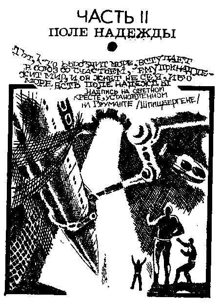 «Только этого мне и не хватало, - подумал Аракелов. - Только этого… Но чего? Что могло случиться и что случилось там, внизу? Связи с патрулями не было. Все, чем мы располагаем пока - два подводных взрыва с интервалом в четыре минуты. Два взрыва в том самом районе, где должны были находитьс субмарины. Так что пока еще ничего не известно. Может быть, пройдет еще полчаса, и субмарины всплывут, и свяжутся по радио с Гайотидой или с нами и доложат об обнаружении «Дип-Вью». Да, - подумал Аракелов, - может быть». Но он знал, что быть этого не может. Просто потому, что там, внизу, вероятность благоприятности всегда меньше половины. Просто потому, что если там что-то происходит, то происходит самое худшее из возможного. И чутьем опытного батиандра Аракелов понимал, что патрули уже никогда не выйдут на связь. Это были не эмоции. Это было знание, пусть даже знание интуитивное. Но взрывы, взрывы? При чем здесь взрывы? Это нужно было понять прежде всего. Нужно было думать, думать, думать. Так же, как думают сейчас наверху, на мостике и в пультовой, так же, как ломают сейчас головы на Гайотиде-Вест. Аракелов положил руки на клавиши телетайпа. «Вас понял. Когда выйдем в точку?» «Через двадцать минут». «Следующая связь через двадцать минут. Если не будет новых данных. Конец». «Вас понял». Аракелов отошел от телетайпа. Взрывы, взрывы… Какие еще сюрпризы преподнесла на этот раз пучина? Сюрпризы - это в ее характере. Сволочном ее характере. Это только для тех, кто плавает по поверхности или погружается в батискафе или субмарине, море - однородная среда с повышающимся пропорционально глубине давлением. Дл того чтобы понять характер пучины, надо стать батиандром, надо войти в нее, слиться с ней, но не отождествляя себя с этой массивной, тяжелой, холодной и бесконечно чуждой средой, а противопоставляясь ей. Стать духом пучин, оставаясь человеком, только так можно познать характер моря. Но… какого же характера этот новый фокус? Что могло погубить две субмарины? Патрульные субмарины Аракелов прекрасно знал. Мощные, надежно защищенные одноместные корабли, оснащенные турбинами Вальтера, маленькие и верткие, способные проникнуть в любую расселину, в любой подводный каньон в пределах своего горизонта. А горизонт у них не бедный - полторы тысячи метров вниз. До сих пор они считались практически абсолютно надежными. За последние десять лет было всего три случая их гибели, причем две лодки просто-напросто выбросило на берег цунами, а третью по собственной глупости загубил сопляк-стажер. Мелкие аварии - другое дело. Мелкие аварии бывали. И всегда объяснялись либо техническими причинами, либо неумелыми действиями водителей. И то и другое возможно всегда. Но гибель двух лодок сразу? У двух лодок не может быть двух одинаковых дефектов. Два водител не могут ошибиться одинаково, по шаблону. Во всяком случае, вероятность этого исчезающе мала. И считаться с ней, пока существуют более вероятные объяснения, не стоит. Значит, поищем причину вовне. А может быть, рано все же искать причину? Вдруг взрывы эти не имели никакого отношения к субмаринам, и через какие-нибудь пятнадцать-двадцать минут они восстанут из мертвых и заговорят со своей базой или с нами? Заговорят, всплыв на поверхность или выйдя в эфир через буйковые радиогидроакустические ретрансляторы? «Это было бы прекрасно, - подумал Ара