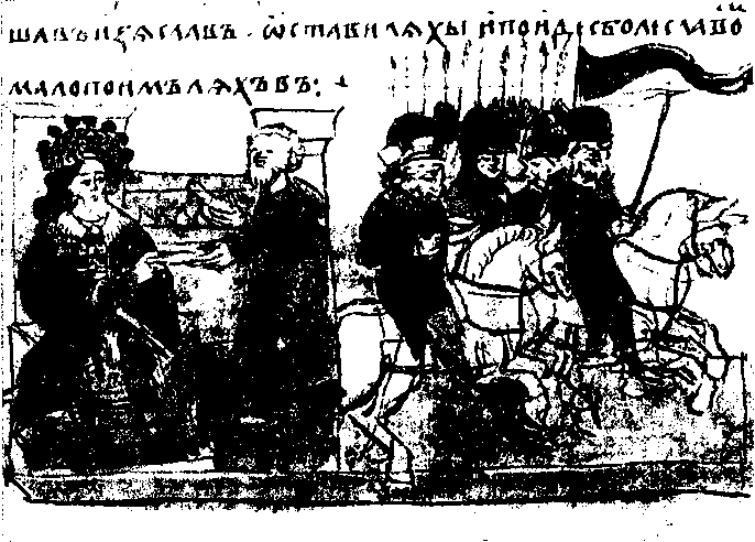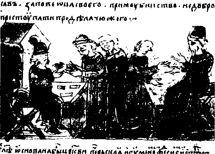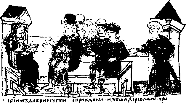 Рис. 4. Прием Ольгой древлянских послов, прибывших в Киев просить ее руки за князя Мала