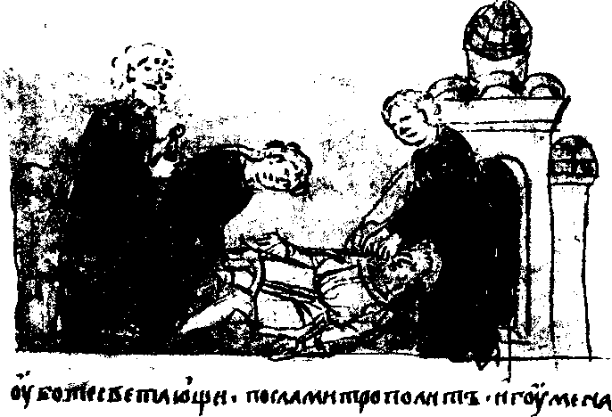 Рис. 41. Захват и пострижение в монастырь Рюрика Ростиславича Романом Мстиславичем