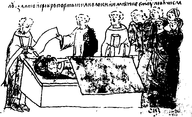 Рис. 37. Отпевание князя Андрея в церкви Боголюбова