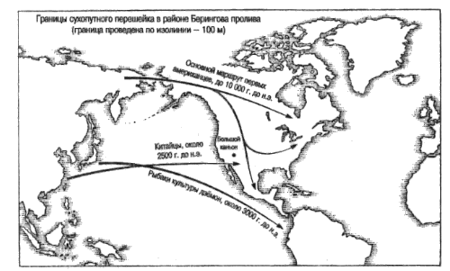Это было время изобилия, когда длинношерстные мамонты, мускусные быки, карибу и полярные зайцы царили на бескрайних равнинах, а тюлени, морские львы и огромные косяки рыб наполняли океаны. Антропологи предполагают, что первыми людьми, перебравшимися из Азии в Америку, были несколько семей охотников, которые преследовали кочующие стада. Они основали на Аляске первые поселения, которые теперь нам известны как эскимосские, став предшественниками американских краснокожих индейцев (хотя известно, что краснокожие индейцы с древних времен имели смешанный расовый состав, и, судя по всему, прибыли в Америку другим путем — через океан, из Индокитая).