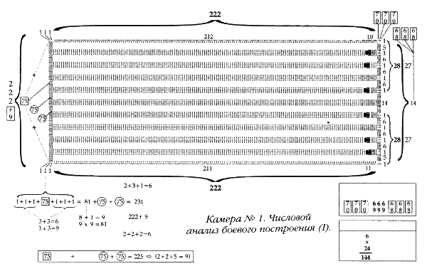 «И после сего видел я четырех Ангелов, стоящих на четырех углах земли [север, юг, запад и восток], держащих четыре ветра земли, чтобы не дул ветер ни на землю, ни на море, ни на какое дерево. И видел я иного Ангела, восходящего от востока солнца и имеющего печать Бога живого. И воскликнул он громким голосом к четырем Ангелам, которым дано вредить земле и морю, говоря: Не делайте вреда ни земле, ни морю, ни деревам, доколе не положим печати на челах рабов Бога нашего. И я слышал число запечатленных: запечатленных было сто сорок четыре тысячи из всех колен Сынов Израилевых».Давайте опять посмотрим на расшифрованное изображения правителя Пакаля с крышки саркофага из Паленке (рис. А52). На его лбу стоит отметина «живого бога», число 144000. Не стоит удивляться современным цифрам, так как Пакаль мог одинаково хорошо видеть прошлое, настоящее и будущее. Это подтверждают слова из священной книги майя «Пополь-Вух»: