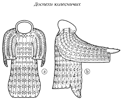 Вкладки 14. Две бронзовые колесницы, каждая из которых была запряжена четырьмя бронзовыми лошадьми, были захоронены в 20 метрах к западу от мавзолея Ши-Хуан-ди (см. рис. 2а). (а) Колесница сопровождения снабжена круглым бронзовым балдахином в форме зонта и управляется стоящим возницей, который вооружен мечом, арбалетом и колчаном с 66 бронзовыми стрелами. (b) Главная колесница снабжена закрытым отделением для гроба с задней дверью и окошками по обе стороны повозки под овальным бронзовым балдахином. Возница правит сидя.