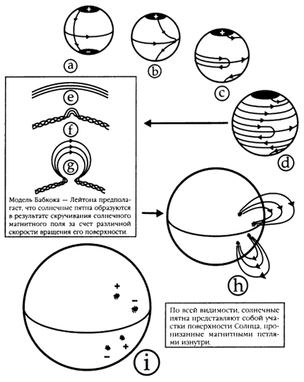 (h) показывает то, как Солнце и его магнитное поле выбрасывают частицы, солнечный ветер, по направлению к земле. Такая бомбардировка приводит к сжатию земного магнитного поля на дневной стороне планеты.