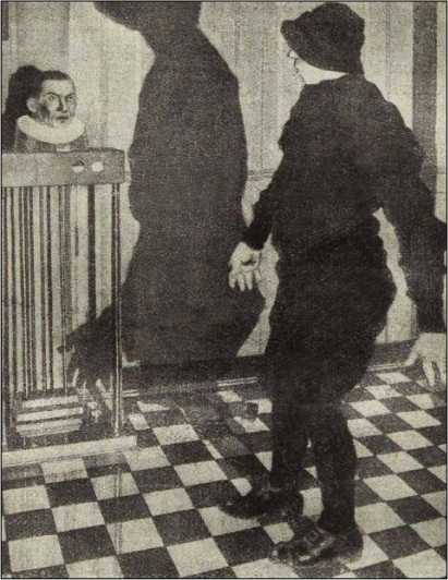 Утомленный бесплодными попытками освободиться от цепей и наручников, прикреплявших меня к креслу, я затих. Незнакомец, все время стоявший в темном углу комнаты, сказал: — Не двигайтесь больше! Смотрите прямо перед собой. Я повиновался, стараясь проникнуть взором сквозь окружавшую меня темноту. Внезапно в одном из углов комнаты появился слабый молочный свет. В трех метрах от меня двигалась какая-то смутная тень, как бы выделявшаяся на бледном экране. Невольно я стал искать источник этого света и обнаружил, что он исходит от меня. Это было холодное сияние, вроде того, которое испускают ртутные лампы. Тень постепенно проявлялась, принимая определенные очертания. Именно «проявлялась», как изображение на фотографической пластинке, погруженной в химический раствор. И я увидел, что эта тень была моим собственным изображением. Все предметы вокруг моего двойника стали принимать на экране ясный облик, и я узнал свою комнатку в Латинском квартале. Я (то есть, мое изображение на экране) ходил по комнате нервными шагами, как бы чего-то ожидая. Потом дверь в комнату отворилась, и сквозь нее просунулась рука с письмом. Тут меня облил холодный пот. Я сделал нечеловеческое усилие, чтобы сорваться с кресла, но узы по-прежнему держали меня крепко. Хриплым голосом я проговорил: — Это письмо… Я его жду со дня на день… Незнакомец, бесстрастно наблюдавший за мной, ответил спокойным тоном: — Вы его получите завтра! — Но что все это значит? Что это за китайские тени? Из угла последовал ответ, в котором, мне казалось, звучала насмешливая нотка: — Это то, что с вами случится завтра! Мой взгляд был снова прикован к экрану. Моя завтрашняя жизнь продолжала развиваться: вот я вскрыл письмо, прочел его, бросил на стол, опустился в кресло. Минуты текли… — Это чепуха, — закричал я снова, пытаясь освободиться от физических и моральных пут, во власти которых я находился. — Это все — чепуха! Правда, я ожидаю письмо, но я завтра не останусь дома, слышите! Я завтра не останусь дома, а пойду на службу! Этого всего не случится! Из угла донесся тот же спокойный голос: — А я вам говорю, что вы завтра останетесь дома и не пойдете на службу. Все случится так, как вы видите… Тень на экране продолжала жить. Там была уже не моя комнатка на улице Сен-Жак, а вход в ресторан: я узнал место, где ежедневно обедал. Вот мой двойник появился, подошел к двери, остановился в колебании и повернул обратно… Тут свет стал слабеть, и все видение растаяло бесследно.* * *