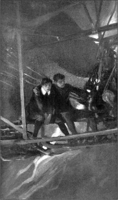 И все же, как мне показалось, я пробудил надежду в душе несчастного отца. С этой мыслью я уехал из Рима во Францию, куда меня призывала моя семья. Через несколько месяцев я снова был уже в Риме и первым своим долгом счел навестить Баццоли. Я оставил его в таком состоянии, что приготовился к самому худшему. Но он был еще жив, что, впрочем, едва ли было лучше. Зимой он перенес тяжелую болезнь, едва не сведшую его в могилу. Не в силах подняться с постели, он велел перенести себя вместе со своим ложем в лабораторию, которую с тех пор не покидал. — Вы понимаете, — сказал он, узнав меня, — я не хочу умереть, не увидев еще раз своих сыновей. Я буду ждать их до последней минуты. Но… они опаздывают… Изможденный, с запавшими глазами, тяжелым и хриплым дыханием, он доживал, казалось, последние дни. Одна лишь безумная надежда поддерживала еще умирающего. — Как ваши работы? — Посмотрите, — ответил старик. В центре подвала была установлена согнутая в виде подковы полоса из какого-то твердого сплава, соединенная проводами с целой системой катушек и магнитов. Считая своих сыновей заблудившимися во времени, он воображал, что изобрел средство остановить их на пути. — Вы уверены, что вам это удастся? — Опыт пока еще не подтвердил моих вычислений, но мне кажется, они безошибочны. Машина, двигаясь с умеренной скоростью по времени, должна, встретив препятствие, остановиться без резкого толчка, постепенно замедляя ход. Ведь мой аппарат вовсе не притягивает сразу, как вы могли предположить. Я сконструировал своего рода тормоз, являющийся источником ретропульсивной силы. Если машина войдет в сферу влияния аппарата, то при постепенном замедлении хода можно будет заметить путешественников за несколько мгновений до остановки… С этими словами, закашлявшись, Баццоли упал на подушку. Припадок продолжался довольно долго; наконец дыхание восстановилось, но кашель довел его до полного изнеможения. — Это безумие! — вскричал я. — Такому больному, как вы, нельзя оставаться в сыром подвале, без свежего воздуха. — Да, я и сам чувствую, что убиваю себя, — пробормотал он. — Но мне необходимо быть здесь… на посту. Там, наверху, у меня не хватит выдержки. Ведь я увижу их, может быть, только одно мгновение… перед смертью. — Вот что, — ответил я. — Мое пребывание в Риме ничем не ограничено, а ваша библиотека достаточно богата. Я готов остаться здесь сторожить вместо вас. Я предложил эту жертву в минуту острого сострадания, и, прежде чем успел одуматься, старик с благодарностью схватил мою руку. — Вы действительно готовы мне помочь? Я кивнул головой. В конце концов, мне придется подежурить всего несколько дней: смерть к нему приближалась… Мы условились с Баццоли, что он перейдет в верхнюю комнату, а в мое распоряжение оставит лабораторию. Я постарался устроиться как можно лучше. В библиотеке ученого оказалось много редких книг, которые хотя и пострадали от сырости, но не стали от этого менее интересными. Читал я с таким упоением, что испуганно вздрагивал, когда служанка Баццоли по приказанию своего хозяина раз десять на день стучалась в дверь, спрашивая, не произошло ли чего-нибудь и нет ли у меня новостей.IV