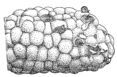 Катушка роговая — раковина закручена в одной плоскости (рис. 17) темно-коричневая, стенки толще, чем у прудовиков, диаметр раковины 3–4 см. Наряду с легкими имеется часть мантии, выставляемая из устья, играющая роль жабер. Тело коричневое, темно-вишневое, шоколадное, щупальца нитевидные. Питается водорослями, высших растений не трогает. Спаривание обязательно,одна улитка не размножается, кладка лепешковидная. Повсеместно в водоемах СССР. Гелизома, «красная катушка», — внешне похожа на роговую катушку, но меньше (до 2 см) в диаметре раковины. Тело и просвечивающая через раковину мантия бывают коричневые, но чаще карминно-красные. Образ жизни, как у катушки. Популярный среди аквариумистов моллюск из водоемов Бразилии. Ампуллярия — крупный моллюск из популярного среди аквариумистов рода южноамериканских улиток. Высота спиральной ширококонусной раковины 65 мм (рис. 18). Устье закрывается крышечкой. Раздельнополы. Кладка над водой в виде продолговатого скопления крупных (диаметром 1,2–1,5 мм) яиц, покрытых известковой скорлупой. Цвет кладки варьирует от розового до серебристо-оранжевого. Улитки выходят из яиц через 4–6 недель, яйца развиваются только во влажном воздухе (рис. 19).