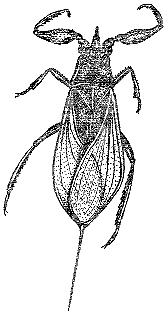 Питание гребляков — предмет давнишнего спора ученых: хищник ли этот клоп? Бесспорно, что гребляки растительноядны, зеленая масса пищи хорошо просвечивает сквозь тело личинок, имеющих лишь зачатки надкрыльев. О таком характере питания говорит и специализация передней пары ног. В аквариуме можно наблюдать и сам процесс питания. Тем не менее ряд авторов считает гребляков хищниками, даже опасными для рыболовства. Последнее предположение можно выяснить во внеклассной работе. Дышат гребляки, стремительно выставляя у поверхности не заднюю часть брюшка, а спинку головогруди. Взятые в руки, гребляки выделяют пахучую защитную жидкость. Покровы и взрослых насекомых довольно мягки, поэтому гребляков не стоит содержать с другими клопами даже равного размера, содержать их надо в обильно засаженном растениями, ярко освещенном аквариуме. Живут в таких условиях эти клопы по нескольку месяцев. Клопы, живущие на субстрате. Водяной скорпион, как и гладыш, широко распространен в наших водоемах. Рассматривая внешний вид клопа (рис. 31), следует обратить внимание на две задние пары ног, сравнить с ногами у свободно плавающих клопов. Ноги скорпиона лишь слегка опушены волосками, морфологически аналогичны ногам наземных клопов и почти не претерпели особых изменений при перемещении из воздушной среды в водную. В основном они выполняют сходные функции, служат для передвижения по субстрату. Но клоп может передвигаться с их помощью, гребет обеими парами, плавает медленно, отрывается от субстрата неохотно.