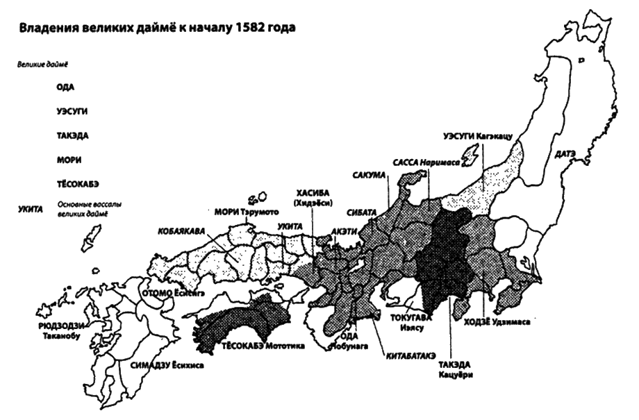 …Моя страна, включающая шесть десятков провинций, за многие годы пережила больше смятений, чем мирных периодов… С юности я размышлял об этой прискорбной ситуации… [и наконец] я снова обрел спокойствие. За несколько лет единство народа установилось на прочных основах, и теперь чужеземные народы, близкие и далекие, несут нам дань. Весь мир повсюду ищет лишь повиновения мне. ..Хотя моя страна теперь в безопасности, я не потерял надежды распространить свою власть на народ династии Мин. На своем плавучем дворце я могу достигнуть Срединной империи в мгновение ока. Это будет так же просто, как коснуться ладони моей руки. Я воспользуюсь им, чтобы посетить вашу страну, каким бы ни было расстояние или различия между нами… Несколько лет назад в мою страну приехали так называемые отцы, чтобы околдовать наших мужчин и женщин, духовенство и мирян. Мы покарали их, и то же самое будет, если они вернутся, чтобы распространять свою веру. Какой бы ни была секта, какой бы ни была сила, которую они представляют, они будут уничтожены. Тогда будет слишком поздно сожалеть об этом. Но если вы желаете установить дружеские связи с этой страной, [знайте, что] моря теперь свободны от угрозы со стороны пиратов и купцы могут въезжать и выезжать беспрепятственно. Помните об этом…Открытие или закрытие мира? Невозможность выйти за рамки кругозора ленного вождя, бахвальство гениального, но тщеславного бретера? Или трогательная попытка постичь этот мир, постоянно ускользающий? Ясно было одно: следовало наложить руку на Кюсю, порт — выход в мир, ключ к прибыльной торговле, доходы от которой представлялись ему тем нужней, что император только что, в 1586 г., возвел его в еще более престижное — а значит, и разорительное — достоинство дадзёдайдзина, первого министра и председателя Высшего совета, должность, созданную в 671 г. и в принципе предназначенную только для принцев императорского рода. И вмешалась судьба: Отомо Ёсисигэ, христианский властитель земли Бунго (современная префектура Оита), тот самый, который недавно отправил эмиссара в Рим, попросил помощи и поддержки против ярости одного южного клана — Симадзу с вулканической территории Сацума (современная префектура Кагосима).(Sources of Japanese tradition. P. 325–326.)