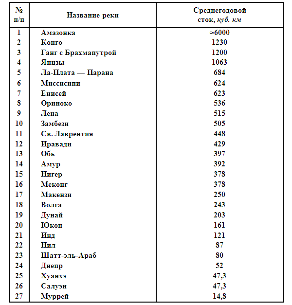 Водоносность величайших рек мира