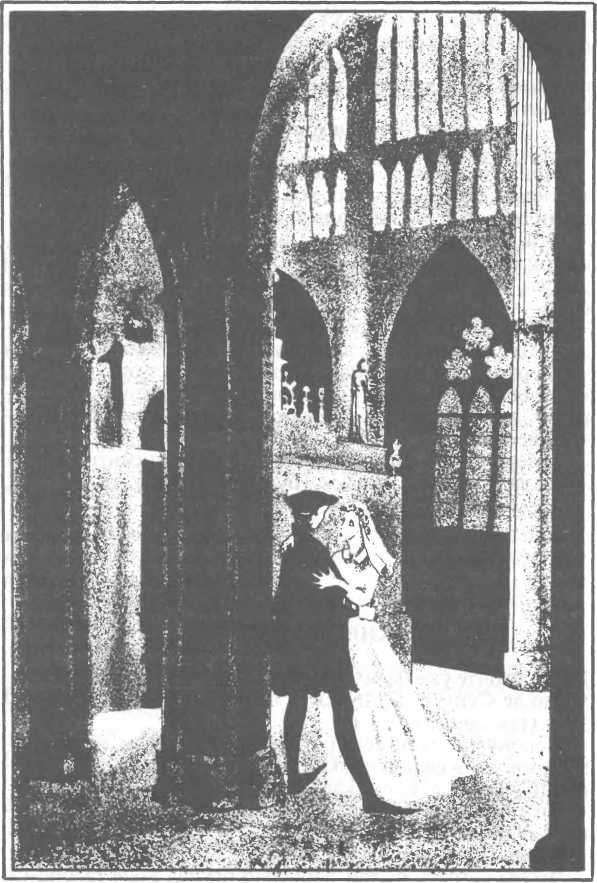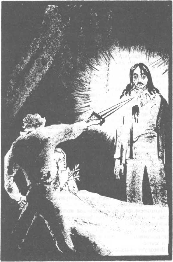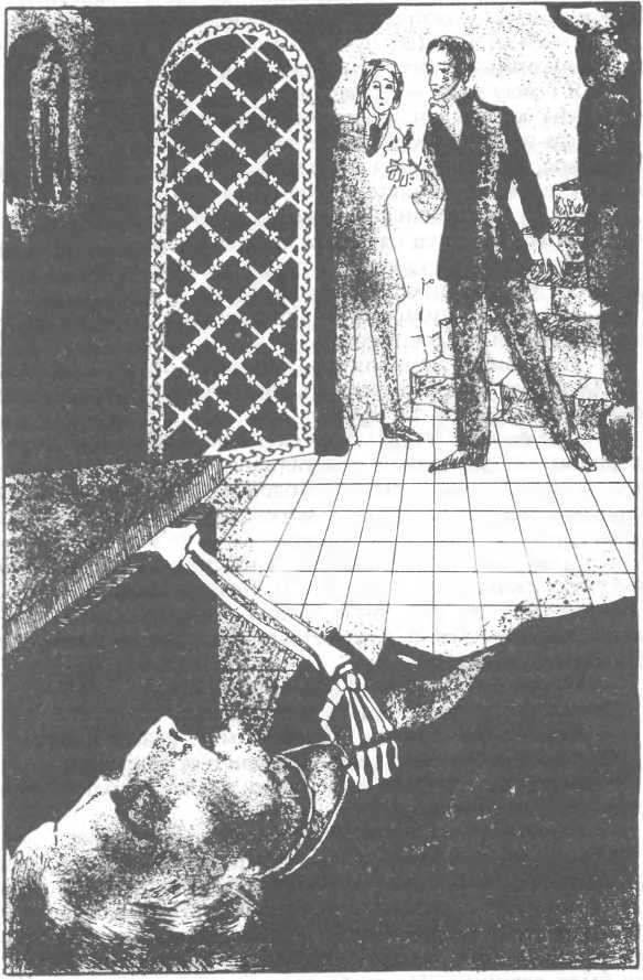 Конрад взял с камина еще не погасшую свечу. Дядя и племянник проскользнули в узкий проход и стали медленно спускаться по мрачной лестнице. Дверь в склеп была открыта. Эберхард взял из рук Конрада факел и повел дядюшку прямо к могиле своей матери. Мраморная крышка была сдвинута. Из гроба высовывалась рука скелета, вцепившаяся в бездыханное тело Максимилиана, задушенного дважды обвившейся вокруг его шеи золотой цепочкой.