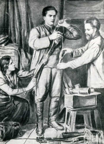 После побега из иркутской ссылки Валериан Владимирович приехал в Самару с явкой к одному товарищу, работавшему в пекарне Неклютина. В этой же пекарне устроили и Куйбышева табельщиком под именем Иосифа Андреевича Адамчика. Самара к этому времени стала одним из крупнейших городов Поволжья. Расположенная на весьма выгодных водных и железнодорожных путях, Самара быстро росла. Ее население лишь за сорок лет утроилось ив 1916 году превышало полтораста тысяч человек. Сельскохозяйственное сырье богатейшего края способствовало развитию пищевой промышленности. Это был центр волжских миллионеров — мукомолов и пивоваров. Быстро росли и расширялись также механические и другие заводы. Все это сопровождалось значительным увеличением промышленного пролетариата. Среди самарских рабочих в 1916 году под влиянием большевистской агитации очень усилились антивоенные настроения. На заводах и фабриках учащались забастовки. Готовый к более решительным революционным выступлениям, самарский пролетариат нуждался в таких политических руководителях, как Куйбышев. Поселился он в доме № 83 по Предтеченской (ныне Некрасовской) улице. Жил в маленьком темном чуланчике. Никакой мебели в нем не было. Вместо постели на полу лежали два полена и на них дверь. Эта «кровать» была прикрыта тонким одеялом. Вскоре Куйбышев уволился из пекарни и перешел на работу в кооператив «Самопомощь» конторщиком. В помещении кооператива иногда происходили тайные собрания рабочих. Это-то и было важно для Куйбышева, искавшего связей с массами. С той же целью он стремится поступить на Самарский трубочный завод. Этот военный завод вырабатывал снаряды, был крупнейшим в Самаре и являлся центром революционного движения. Там насчитывалось свыше двадцати тысяч рабочих. Среди них было много высланных большевиков. На этом заводе, кроме официального стола найма рабочей силы, существовал неофициальный, подпольный. Он состоял из революционно настроенных высококвалифицированных рабочих, задачей которых было дать квалификацию тем, кто приходил на завод для революционной, подпольной работы. Конечно, новые, неопытные товарищи часто ломали инструменты. Чтобы из-за этих поломок мастера цехов не могли заподозрить и разгадать деятельность большевиков-подпольщиков, надо было иметь запасные инструменты и быстро ликвидировать неисправности, а также помогать новичкам-подпольщикам овладевать специальностью. Это и делал подпольный стол найма рабочей силы. Однажды к рабочему завода Дмитриеву, фрезеровщику шестой мастерской, подошел приемщик Быков и, осторожно оглянувшись, сказал: — Вот что, Дмитриев, я к тебе приведу человека… нашего… Понимаешь? Будешь обучать фрезерному делу. Вскоре Быков действительно пришел к нему с Куйбышевым-Адамчиком. «Это, видно, большой человек, — подумал Дмитриев. — Его послала к нам на завод партия. Надо помочь ему…» И начал обучать Адамчика. Первое время у Валериана Владимировича тоже были поломки. При затяжке гаек на болтах у него часто срывалась резьба, фрезы на оправках разлетались в куски. Приставленный к нему Дмитриев еле успевал исправлять поломки. Однако вскоре Куйбышев освоил станок и стал не только выполнять, но и перевыполнять норму. — Ну, как новый подмастерье-то? — спросил приемщик Быков, повстречав Дмитриева. — Успевает? — Успевает вполне, — отв