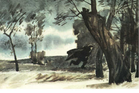 Канавка становилась всё мельче. Вскочил, побежал к лесу. В тот же миг сзади раздалось: «Хальт!» — «Стой!». — Его заметили. Раздался выстрел. Он оглянулся и в нерешительности замер. — Федя, вперёд! — закричал Гусейнов. Теперь фашисты обнаружили и его. Застрочили автоматы. Фёдор рванулся назад. Но Гусейнов, уже не таясь, отвлекая погоню на себя, бежал через поле: — Федя, вперёд! Давай вперёд! — Он останавливался, стрелял в бегущую на него цепь, снова бежал и непрерывно кричал: — Беги, Федя! Беги!.. Фёдор бросился в лес. Последнее, что он услышал, — взрыв гранаты.