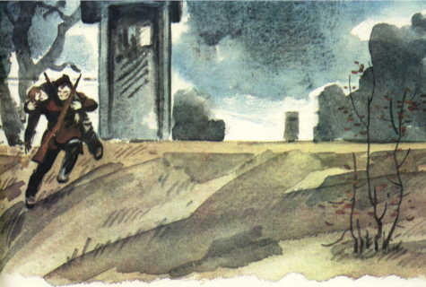 Острый луч фонаря шарит по лесу, пробиваясь далеко в чащу. Наконец свет гаснет, и становится ещё темней, чем прежде. — Дорогу смотрели, а? — говорит Гусейнов. — Вроде, — не сразу откликается Лебеденко. — Интересно, кто это может быть? — чересчур весело спрашивает Фёдор. Но голос у него дрожит. Фёдору восемнадцать лет, и больше всего он боится показать, что ему страшно. — Чего гадать? Посмотрим, — Лебеденко выпрастывает из-под накидки винтовку. — Хлопцы, отсюда ни шагу! Я мигом! — и пропадает во мраке. Шумит дождь. Фёдору мерещится: Лебеденко напоролся на фашистов, его схватили, их окружают… — Гусейнов, что-нибудь слышишь? — Дождь слышу. И ты слушай и молчи. Дождь всё сильнее. Тонкая, холодная струйка течёт Фёдору за ворот. Он завидует Гусейнову, которому, наверное, никогда не бывает страшно. Лебеденко возникает рядом внезапно. — Как тут? — Нормально, — отвечает Гусейнов. — Видел? — Темно, не разглядеть. Вроде кто-то из местных… — Что ему дорога далась? Подозрительно… — Пошли к деду, дед должен знать. На опушке леса не так темно. Впереди в селе мерцает жёлтый огонёк — это знак: дед ждёт.