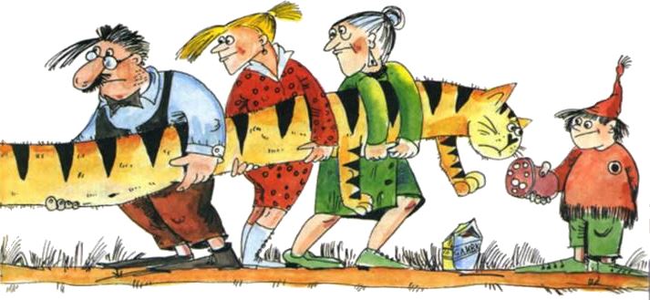 Я знаю одну жуткую историю, которую и пересказать-то страшно, но, исходя из интересов вашего благополучия, я просто обязана это сделать. Одна кошка, которая жила на два дома, как-то беспечно устроилась поспать на солнышке вблизи от оживленной улицы, как раз где-то посредине между своими домами. И надо же было случиться, что обе ее семьи встретились именно в этом месте! В результате между ними разразился грандиозный скандал с взаимными оскорблениями и претензиями на свое исключительное право собственности на нее. Бедная киска, разбуженная этим гвалтом, настолько растерялась, что некоторое время никак не могла сообразить спросонок, что же происходит и что ей нужно делать. Вместо того чтобы бежать со всех ног с этого места, как будто черти за ней гонятся, она продолжала сидеть в полной растерянности. И прежде чем она наконец сообразила, члены одной семьи схватили ее за голову, а другой — за хвост и стали тянуть каждый к себе! Я думаю, что мне вряд ли стоит продолжать и уточнять, к чему это привело…
