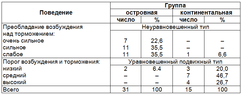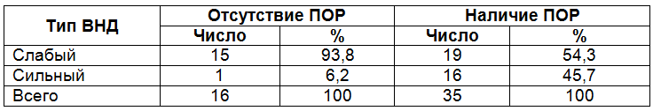 6. Тип ВНД у собак без проявления ПОР и обладающих ПОР