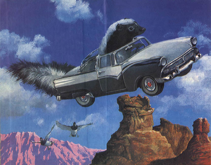 Полковник сразу побагровел, — видимо, расстроился. Оно и понятно. Где это видано, чтобы самолет в воздухе налетал на автомобиль? Громко топая, полковник подошел к Слейду и наорал на него, а Слейд в ответ тоже заорал, и я удивился, с чего это они так взъелись друг на дружку, но оказалось — ничего подобного. Просто такие уж у них голоса, когда они волновались. Кругом все бегали и суетились и тоже орали, но это продолжалось недолго. Прежде чем полковник и Слейд перестали шуметь, набежало полным-полно солдат и инициатива перешла к военно-воздушным силам. Окончив разговор со Слейдом, полковник подошел ко мне. — Итак, машина была ваша, — сказал он таким голосом, будто я во всем виноват. — Да, моя, и я стребую с вас убытки по суду. Машина была первый сорт. Полковник вперился в меня так, словно хотел убить на месте, и вдруг узнал. — Постойте-ка, — сказал он. — Это не вы у меня на днях были? — Точно. Я еще рассказывал вам о своих скунсах. Один из них как раз сидел сейчас в старушке Бетси. — Валяйте дальше, приятель, — сказал полковник. — До меня что-то туго доходит. Только не травите. — Старушка Бетси — это машина, — объяснил я, — и в ней сидел скунс. Когда в нее врезался ваш самолет, скунс приземлился на крыле от машины. — Вы хотите сказать, что скунс… крыло… что… — Он вроде бы спланировал, — докончил я. — Капрал, — обратился полковник к Слейду, — что там у него на счету? — Да только езда в пьяном виде, — ответил Слейд. — Пустяки. — Я хотел бы взять его с собой на базу. — Буду вам очень признателен, — неуверенным голосом ответил Слейд. — В таком случае пошли, — сказал полковник, и я проследовал за ним к джипу. Мы расположились на заднем сиденье, а машину вел солдат — шпарил как на пожар. Мы с полковником особенно не разговаривали. Мы только зубы стискивали и надеялись, что доберемся живыми. Так, по крайней мере, было со мной. Там, на базе, полковник сел за свой письменный стол, знаком приказал мне занять кресло. Потом откинулся на спинку стула и давай меня изучать. Счастье, что ничего плохого я не сделал, иначе под его взглядом я бы, пожалуй, не выдержал и раскололся. — Вы тут много чего наговорили, — начал полковник. — Устраивайтесь поудобнее и расскажите все с самого начала, не пропуская ни единой мелочи. Я стал рассказывать все как есть и пустился во всякие подробности, чтобы втолковать ему мою точку зрения, а он ничего, не перебивал, только сидел и слушал. Ни разу еще мне не попадался такой хороший слушатель.