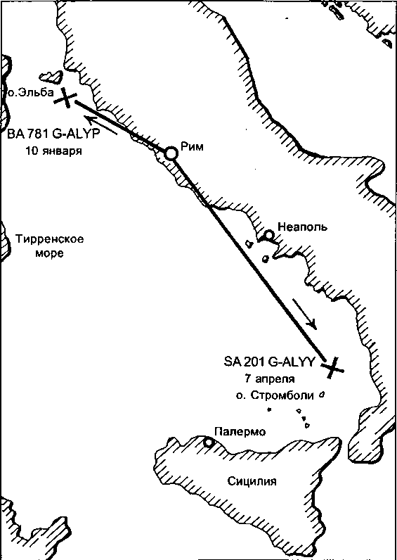 Кей, Кигли и Тайсхерст должны были вылететь рейсом ВЕ548 в Брюссель на самолете «Трайдент I» фирмы «Де Хевиленд». «Трайдент», совершивший свой первый полет в 1962 году, был первым в мире самолетом, у которого три реактивных двигателя были установлены в хвостовой части фюзеляжа. Он почти на год опередил своего американского конкурента «Боинг-727» и на 10 лет советский лайнер «Ту-154», которые были построены по аналогичной схеме. Размещение двигателей в хвосте самолета имеет свои преимущества и недостатки. Плюсами схемы, при которой два двигателя устанавливаются на пилонах по бокам, а один внутри фюзеляжа, является, во-первых, более высокая по сравнению с четырехдвигательными самолетами экономичность. Во-вторых, освобождение крыла от пилонов делает его аэродинамически чистым, что позволяет не только повысить несущие свойства плоскостей, но и облегчить их конструкцию. В-третьих, снижается шум в пассажирском салоне и повышается комфорт. В-четвертых, за счет малого удаления двигателей от оси симметрии машины даже полная остановка одного из двигателей в полете не вызывает значительной асимметрии тяги.