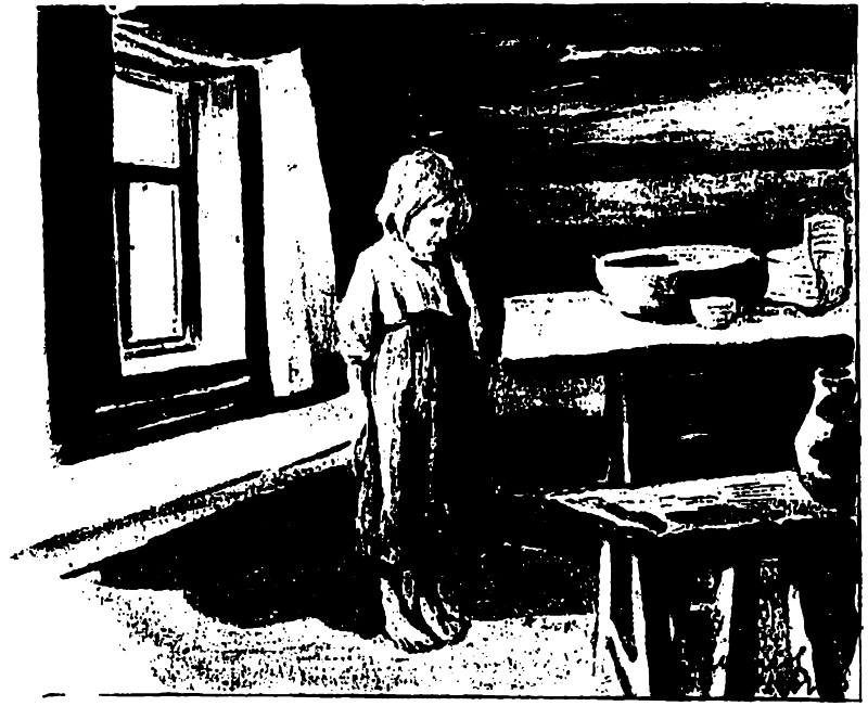 Тихими шажками вышла она на крыльцо и села на нем в своей любимой позе с коленями под подбородком, тоскливо охваченными ее детскими ручонками.