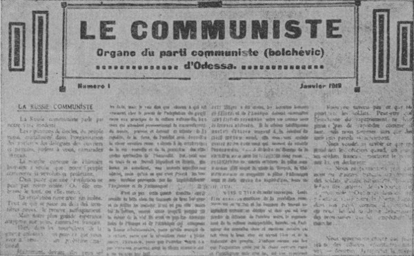 Печатная пропаганда — распространение газет, листовок, воззваний — была одной из главных и наиболее действенных форм работы среди войск интервентов. Подпольная газета «Коммунист» — орган Одесского областного и городского комитетов КП(б)У — стала выходить на русском языке после первого съезда Коммунистической партии Украины, когда Центральный Комитет направил в одесскую партийную организацию группу опытных партийных работников. На одном из заседаний областного комитета партии и президиума Иностранной коллегии было решено организовать выпуск газеты на французском языке. Первый номер «Le communiste» вышел в январе 1919 г. До конца англо-французской оккупации было выпущено около десяти номеров. В связи с изданием на двух языках редакция разделилась на две редколлегии, но некоторые работники одновременно участвовали в издании обеих газет. В январе 1919 г. в состав редколлегии «Коммуниста» входили Е. Соколовская, В. Елин (брат Якова Елина), Б. Духовный, С. Яновская. Членами редколлегии «Le communiste» в это время были Ж. Лябурб, Е. Соколовская, А. Залик, Г. Гржелякова. По условиям конспирации редакция «Коммуниста» не имела, конечно, постоянной резиденции, ей приходилось часто менять свое местопребывание. Чаще всего заседания редколлегии проводились в доме № 37 по Нежинской улице, где проживал один подпольщик, «владевший» маленькой молочной лавкой. В темной комнатушке, примыкавшей к лавочке, и происходили заседания редколлегии, на которых обсуждались статьи, отбирались для публикации радиограммы, намечались темы и авторы статей для последующих номеров. На первых порах, пока не было собственной типографии, много трудностей было с печатанием газеты, а также с ее распространением. Обычно каждый номер «Коммуниста» печатался тиражом в 3–5 тысяч экземпляров. На заводы и фабрики доставлялось столько экземпляров газеты, чтобы один номер приходился на 25–30 человек. Создание типографии явилось большой победой подпольной организации. Л. Картвелишвили, вспоминая то время, писал: — Помню, прибежал радостный, восторженный товарищ Ласточкин ко мне на квартиру и известил, что типография готова. «Жив Курилка!» — воскликнули мы в один голос, и, не теряя ни минуты, помчались к товарищам за материалами для «Коммуниста». Теперь газета стала выходить систематически, тиражом 5–6 тысяч экземпляров. Выход каждого номера был истинным праздником для рабочих. Газетой зачитывались, ее передавали, как величайшую драгоценность, из рук в руки, пока она не превращалась в лоскутки. Все это привело в бешенство белогвардейскую газету «Южная Русь». «Что думает власть? На всех углах раздается подпольный «Коммунист», идет бесшабашная революционная агитация, а агенты власти до сих пор не в состоянии открыть неуловимую редакцию «Коммуниста»». О чем писал «Коммунист» на своих страницах? Посмотрим некоторые сохранившиеся номера. В передовой статье номера от 15 марта 1919 г. говорится о скором освобождении Одессы частями Красной Армии. Большая статья посвящена победе немецкого рабочего класса в Баварии и перспективам революционного движения. В «Письме в редакцию» и в одной из заметок рассказывается о зверствах «Добровольческой армии». В номере опубликованы телеграммы из Москвы — о положении на фронтах и успехах Красной Армии, из Вологды — о брожении в английских, американских 