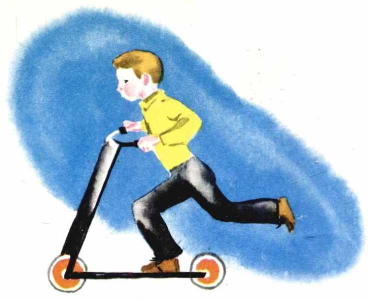 Оставил Вова Гошин свой самокат во дворе, а сам ушёл обедать. Не успел поесть, как видит: на его самокате Костик катается.