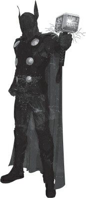 В квартале от главной улицы Тор наблюдал, как Фандрал выполнил боевой прием, который Вольштагг назвал "Летающая гора". Это выглядело практически также, как и звучало. Вольштагг подбежал к Фандралу, который опустился на колени и сложил руки для трамплина. Вольштагг ступил на сцепление рук, и Фандрал подкинул его в сторону Разрушителя. Это был сокрушительный удар, несмотря на то, что он был опасным для спины Фандрала. Ни один враг не мог устоять против несущейся массы Вольштагга. Кроме Разрушителя, который отмахнулся от него, как от насекомого. Вольштагг кувыркнулся в воздухе и рухнул на капот припаркованной машины. Пламя Разрушителя начало разгораться. Еще мгновение и он испепелит оглушенного ударом Вольштагга на месте. В самую последнюю секунду леди Сиф спрыгнула с крыши ближайшего здания, держа копье обеими руками. Она вложила всю свою силу в удар, вонзив острие копья в затылок Разрушителя. Разрушитель обмяк и рухнул наземь. Сиф же благополучно приземлилась за его спиной. Вольштагг был недоволен. Она уже не в первый раз спасала ему жизнь. Она всегда старалась помогать своим друзьям. Воины расслабились лишь на мгновение... а затем Разрушитель снова начал нападать. Его голова начала крутиться в разные стороны, совсем как у совы, лента доспехов закрутилась и переориентировалась так, что через несколько секунд воткнутое копье оказалось спереди, а не сзади. Печь внутри шлема пылала, и рев собирающегося огня заставил Сиф отскочить в сторону как раз вовремя, потому что выстрел пришелся на место, где она только что находилась. Разрушитель стал медленно подниматься, пока не освободился от пронзившего его копья. Он снова повернулся и прошелся по улице огнем. Повсюду летали машины, так же как и Сиф с тремя воинами, когда их охватило непреодолимое пламя Одинфорса. Тор должен был действовать. – Давай! Вперед! Беги! – крикнул он Джейн. Она так и поступила, вместе с Дарси и Селвигом. Тор тоже побежал, но в другом направлении, туда, где упала Сиф. – Сиф, – сказал он, когда она попыталась встать. – Ты сделала все, что могла. – Нет, – процедила она сквозь зубы. – Я умру смертью воина. Об этом дне сложат легенды. Тор остановил ее от того, чтобы броситься к Разрушителю. – Живи и будешь сама их рассказывать, – сказал он. – Теперь уходи. Вы должны вернуться в Асгард. Нужно остановить Локи. – А как же ты? – спросила Сиф. – Не волнуйтесь обо мне. – Тор оглянулся на Разрушитель, который искал их на другом конце главной улицы. – У меня есть план. Пока его друзья, как Асгардиане, так и смертные, отступали к заброшенному зданию «СМИТ МОТОРС», Тор шел по центру главной улицы. Разрушитель приближался с другой стороны, вырисовываясь сквозь дымящиеся обломки и отбрасывая в сторону машины. Джейн крикнула остальным, чтобы они оставались в стороне: – Что он делает? – Брат, – обратился Тор. Он говорил с Разрушителем, но знал, что Локи его слышит. – Что бы я ни сделал тебе плохого, что бы ни заставило тебя пойти на это, прими мои извинения. Но эти люди ни в чем не виноваты. Отняв у них жизни, ты ничего не приобретешь. Он остановился, глядя на Разрушителя, который тоже остановился. Их разделяло меньше десяти футов. Передняя часть шлема Разрушителя открылась, и огонь внутри с ревом ожил. Неустрашимый Тор продолжал. За время, проведенное на Земле, он кое-чему научился. Истинная доблесть 